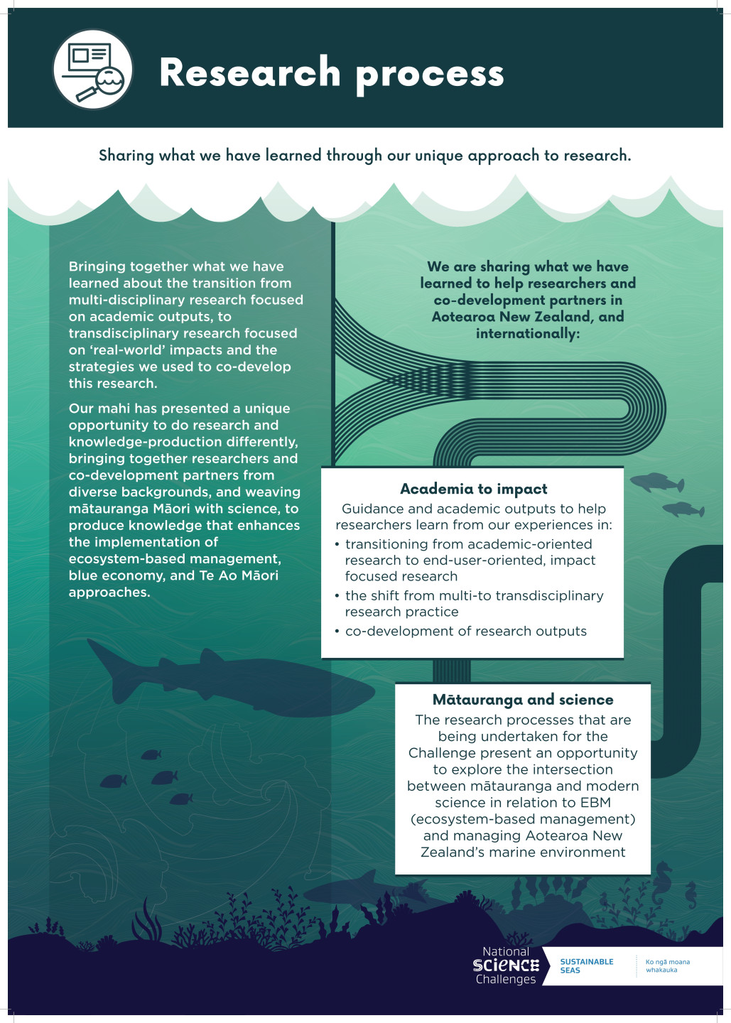 Our mahi has presented a unique opportunity to do research and knowledge-production differently, bringing together researchers and co-development partners from diverse backgrounds, and weaving mātauranga Māori with science, to produce knowledge that enhances the implementation of ecosystem-based management, blue economy, and Te Ao Māori approaches.