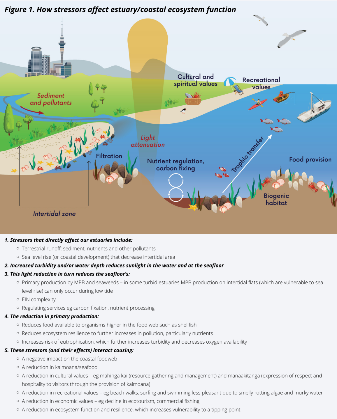 Estuaries are some of our most productive ecosystems and are where many New Zealanders work, live and play. They are affected by stressors from both land and sea, which makes managing them especially complex. In addition, decision makers have limited tools and information to help inform which management actions will be most effective.